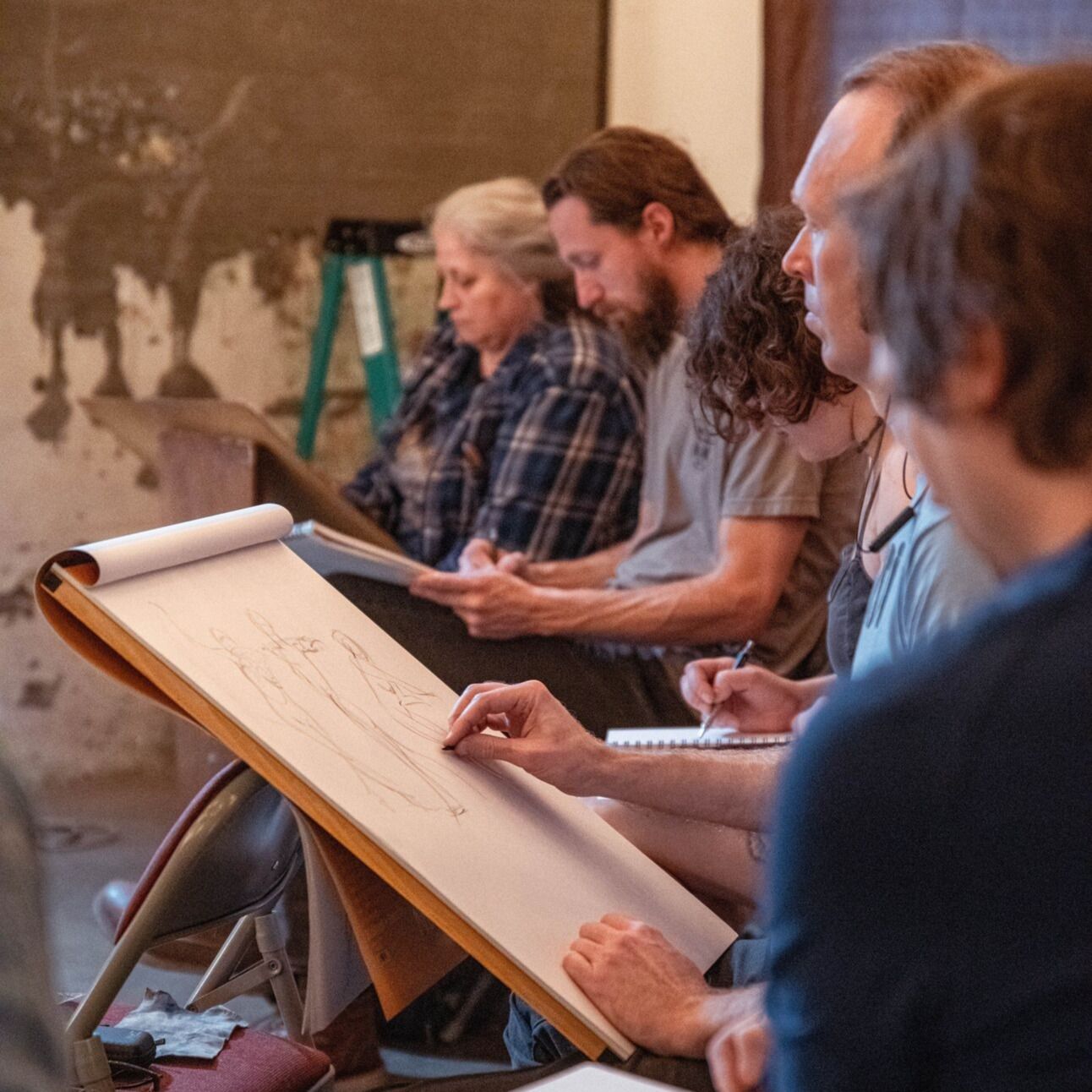 Our open figure drawing sessions provide a dedicated space for artists of all levels to practice and refine their skills. Every Wednesday from 6-8 PM, we host undraped model sessions that offer a range of poses, from quick gestures to up to 20 minute poses. Our goal is to maintain an approachable atmosphere for new artists practicing, as well as a high quality set.