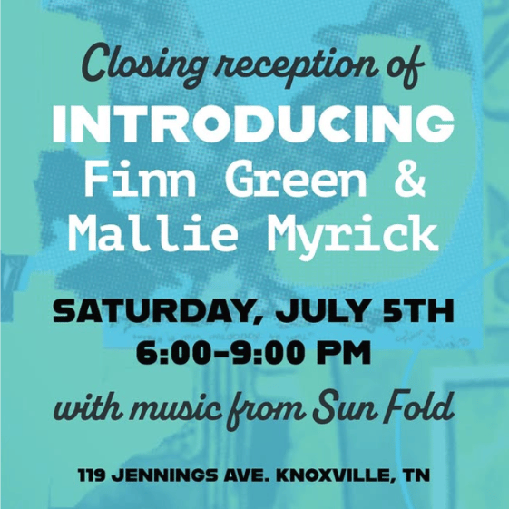 Join us for the closing reception of “Introducing Finn Green + Mallie Myrick” on Saturday, July 5th at @spacecraftknox from 6-9 PM with musical guests @xsunfoldx !